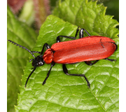 Zum Unterschied vom recht ähnlichen Scharlachroten Feuerkäfer ist bei dieser Art auch der Kopf rot gefärbt. Die Imagines findet man auf blühenden Sträuchern und auf liegenden Laubholzstämmen. Die Larven ernähren sich carnivor von anderen Insekten und neigen auch zu Kannibalismus.