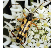 Im Vulkanland überall anzutreffen ist dieser Schmalbock, der sich vor allem auf blühenden Kräutern und Sträuchern aufhält, besonders auf Korblütlern (z. B. Margariten), Doldenblütlern, Weißdorn u. a. Unter den schwarzen Bockkäfern durch die rote Hinterleibsspitze gut kenntlich.